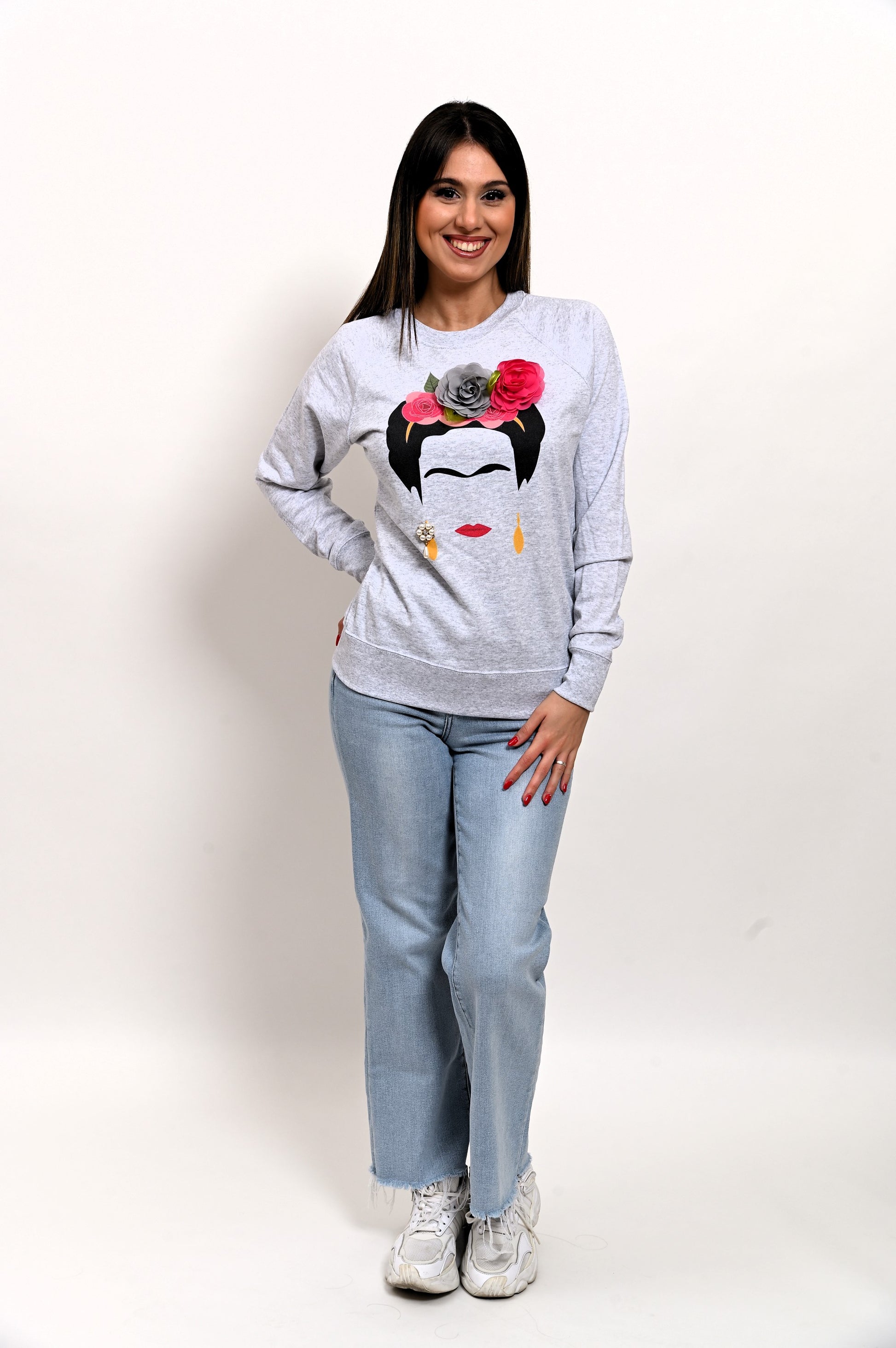 Lasciati incantare dal fascino di Frida, con la sua corona di Fiori! Questa felpa è iconica, artistica e dettagliata, realizzata con materiali di alta qualità ed una stampa dai colori intensi. Vivi lo stile culturale del Messico con una felpa che combina arte e moda!