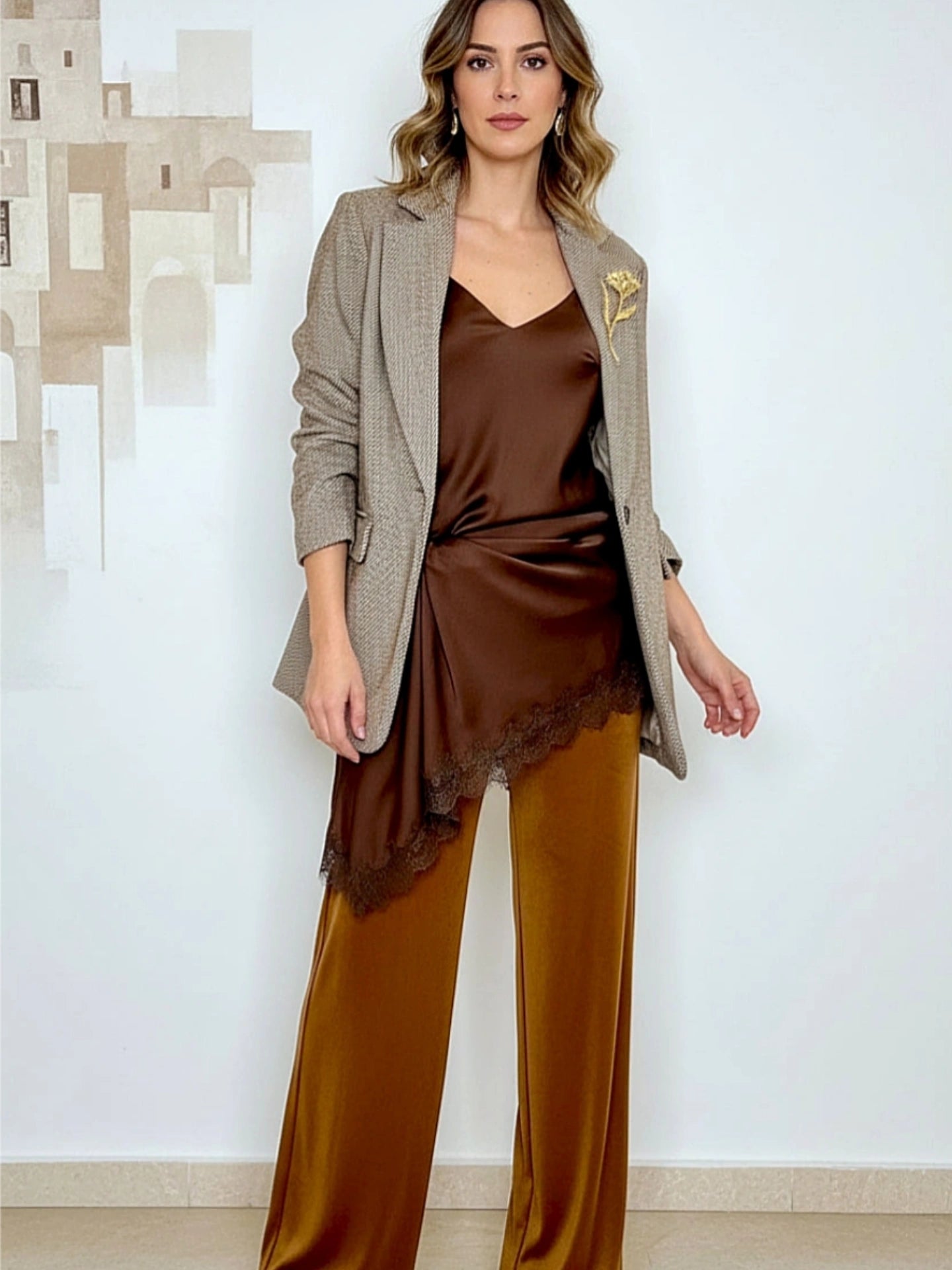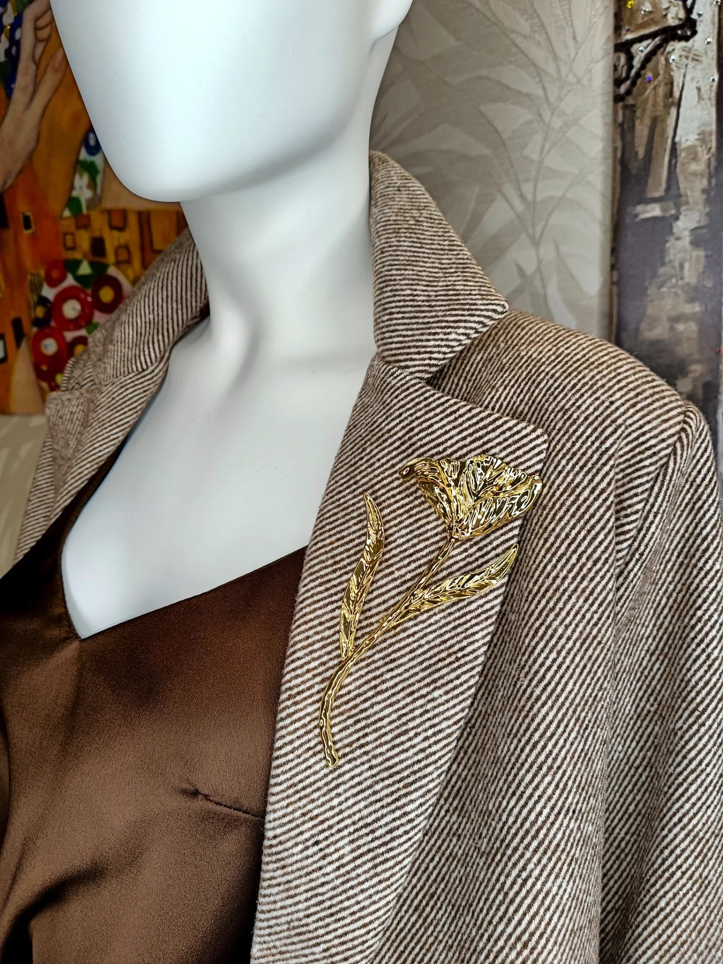Il design pulito è arricchito da una spilla gioiello dorata floreale removibile, dettaglio iconico CHOOSE che dona luce e personalità. Perfetta da abbinare sia ad abiti eleganti che a look più minimal per un’eleganza quotidiana.