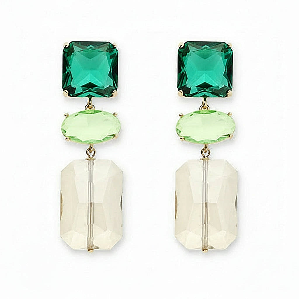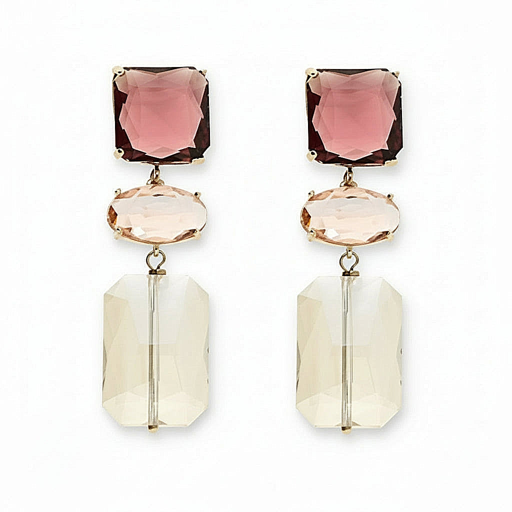 Aggiungi eleganza al tuo stile con gli Orecchini Pendenti a Cristalli. Con tre cristalli sfaccettati montati su una struttura dorata, ogni coppia offre un gioco di colori raffinato e luminoso. Perfetti per serate speciali e un tocco di classe al tuo outfit quotidiano.