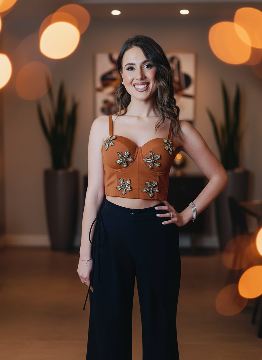 La difformità di piazzamento delle stampe e cristalli che potresti trovare sui nostri prodotti è una caratteristica del “fatto a mano”. Una particolarità che rende ciascun capo o accessorio unico ed esclusivo.