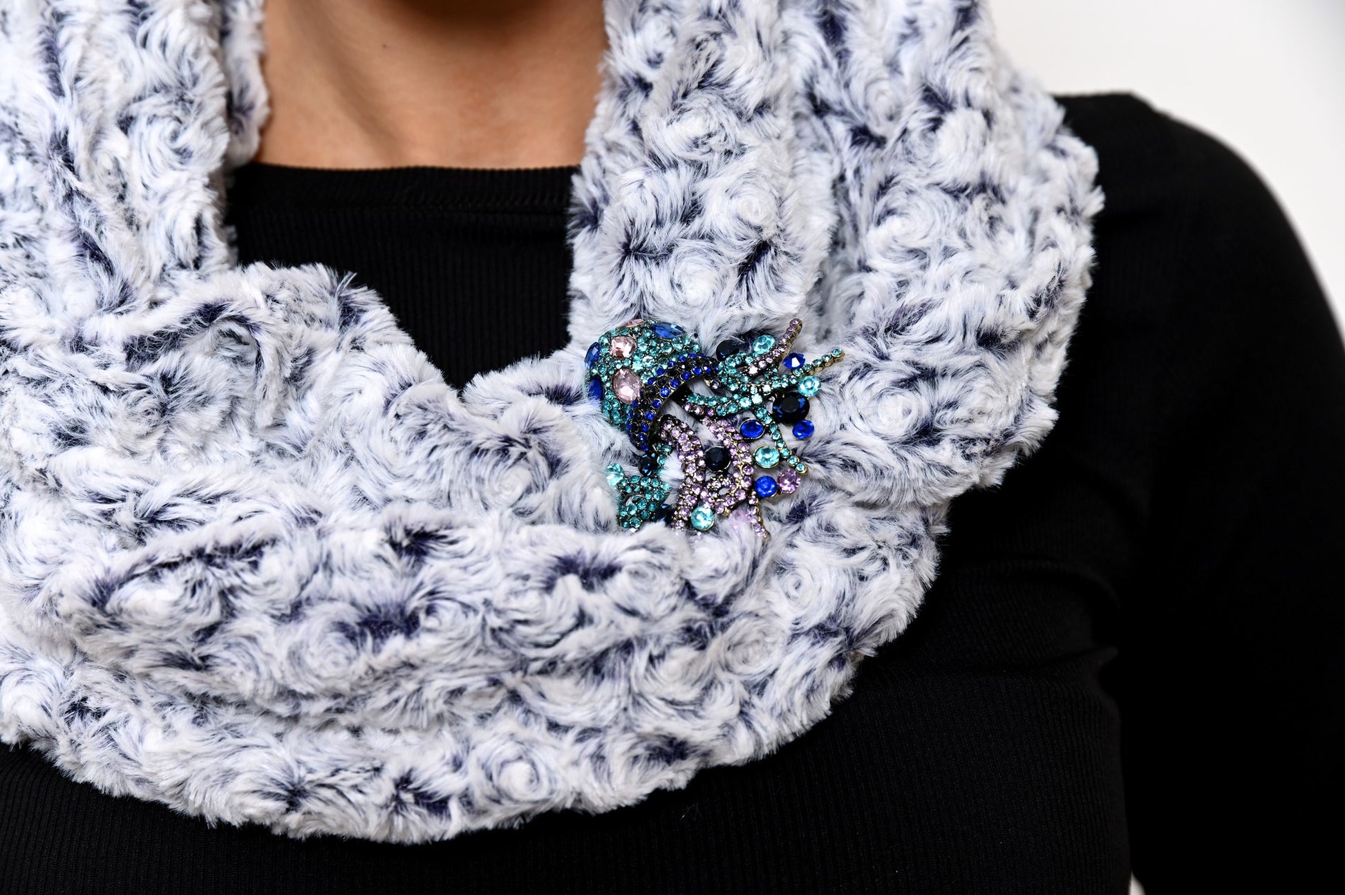 Questa sciarpa ad anello è un accessorio di lusso di qualità eccezionale. Realizzata in materiale soffice, avvolgente e piacevole al tatto, è calda e confortevole, e finitura con un fermaglio gioiello che la rende unica. Una sciarpa all'avanguardia per un look di eleganza senza tempo.