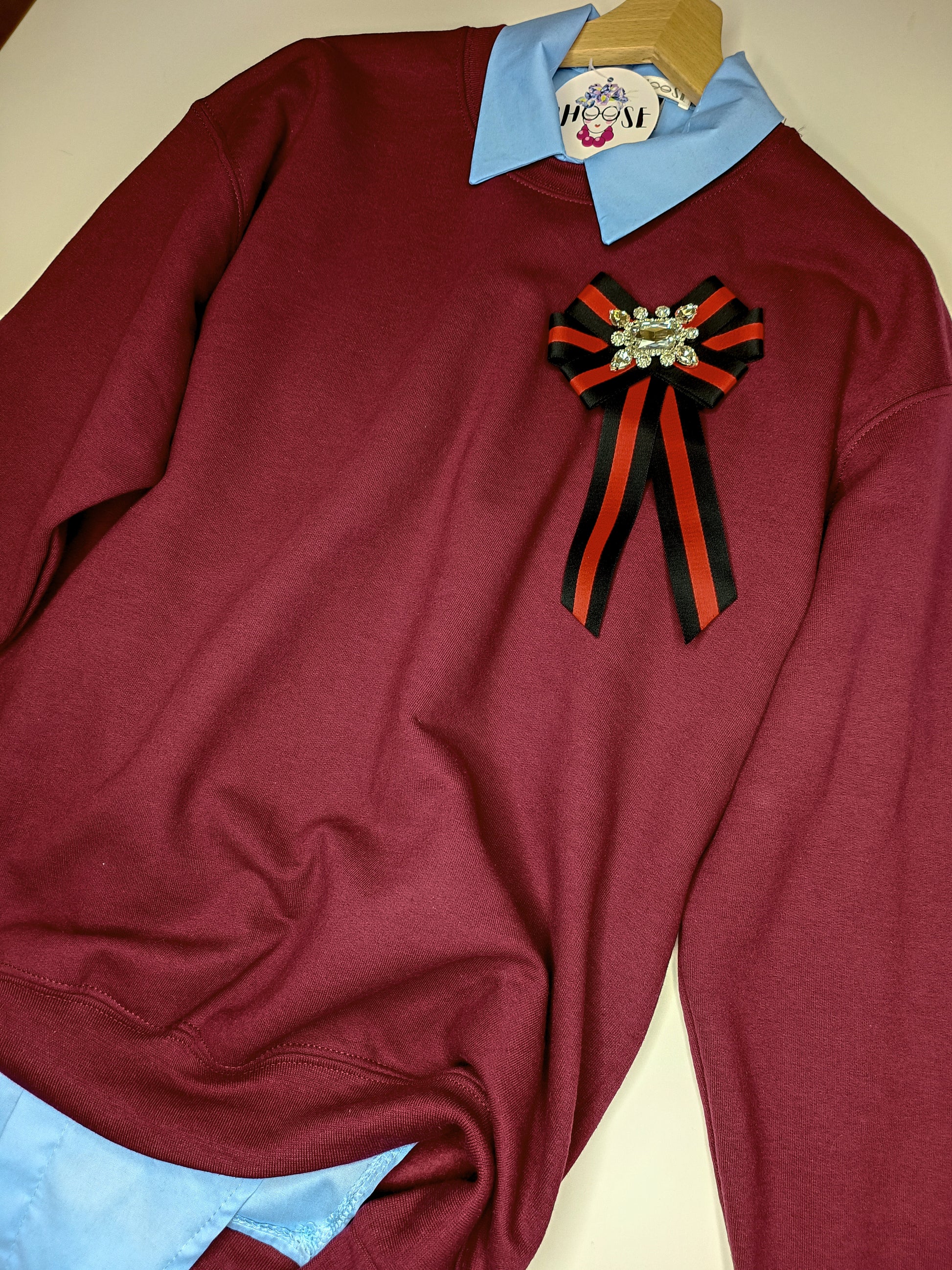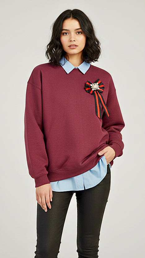 Scopri la comodità e l'eleganza della Felpa con Fiocco. Realizzata con un morbido tessuto, questa felpa è perfetta per mantenere il calore invernale , con la spilla rimovibile. Aggiungi inoltre la finta camicia come articolo consigliato per un look unico e sofisticato.