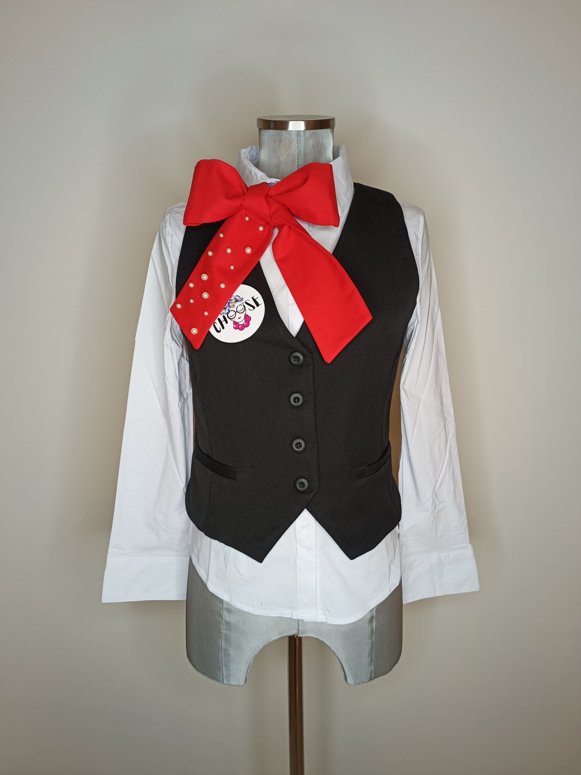 Aggiungi un tocco elegante e raffinato al tuo look con il nostro accessorio fiocco. Realizzato in pregiato cotone e arricchito da punti perla, può essere utilizzato come cravatta o fiocco per dare un tocco di classe al tuo outfit. Versatile e sofisticato, è un must-have per ogni donna di stile.